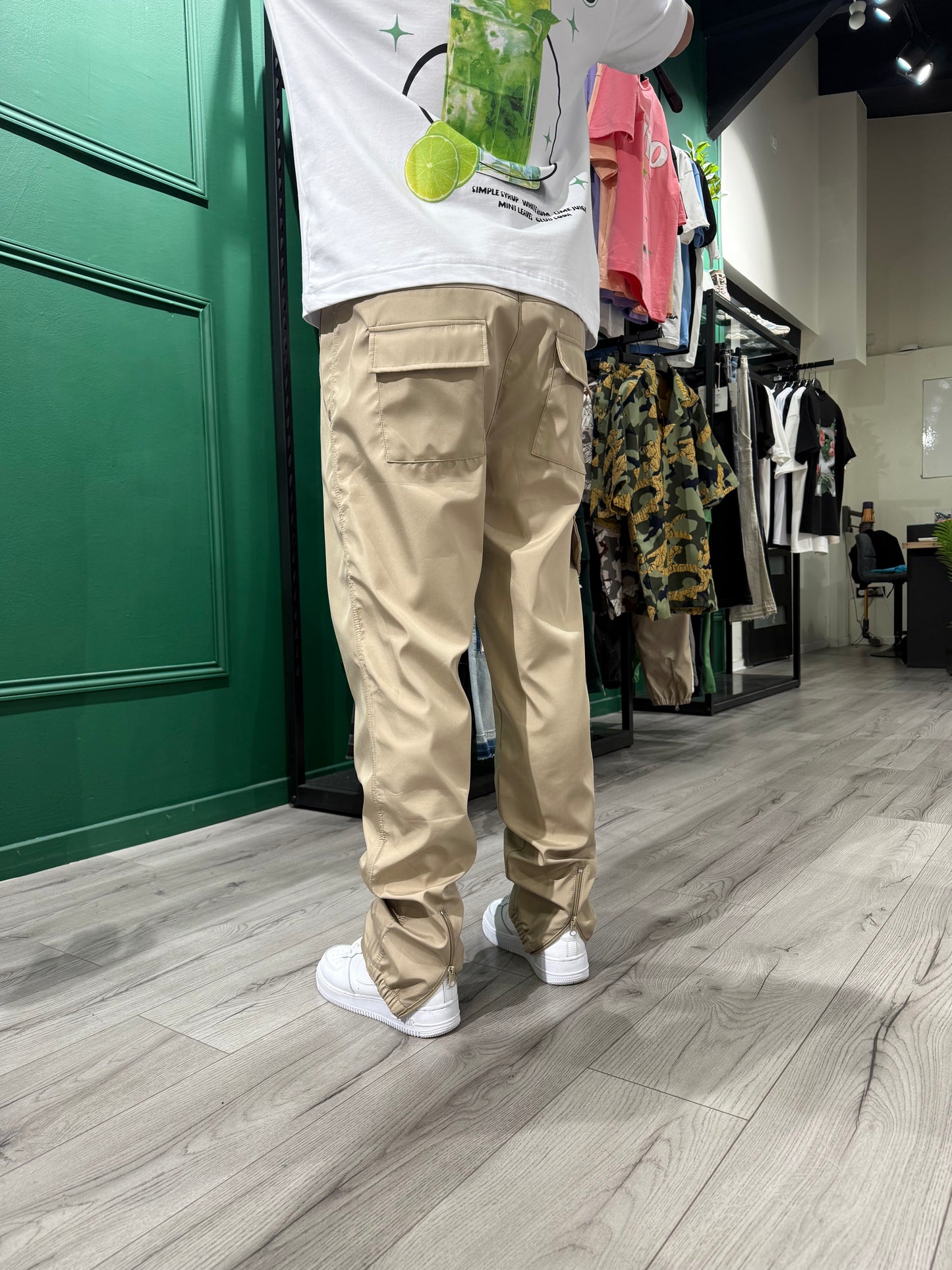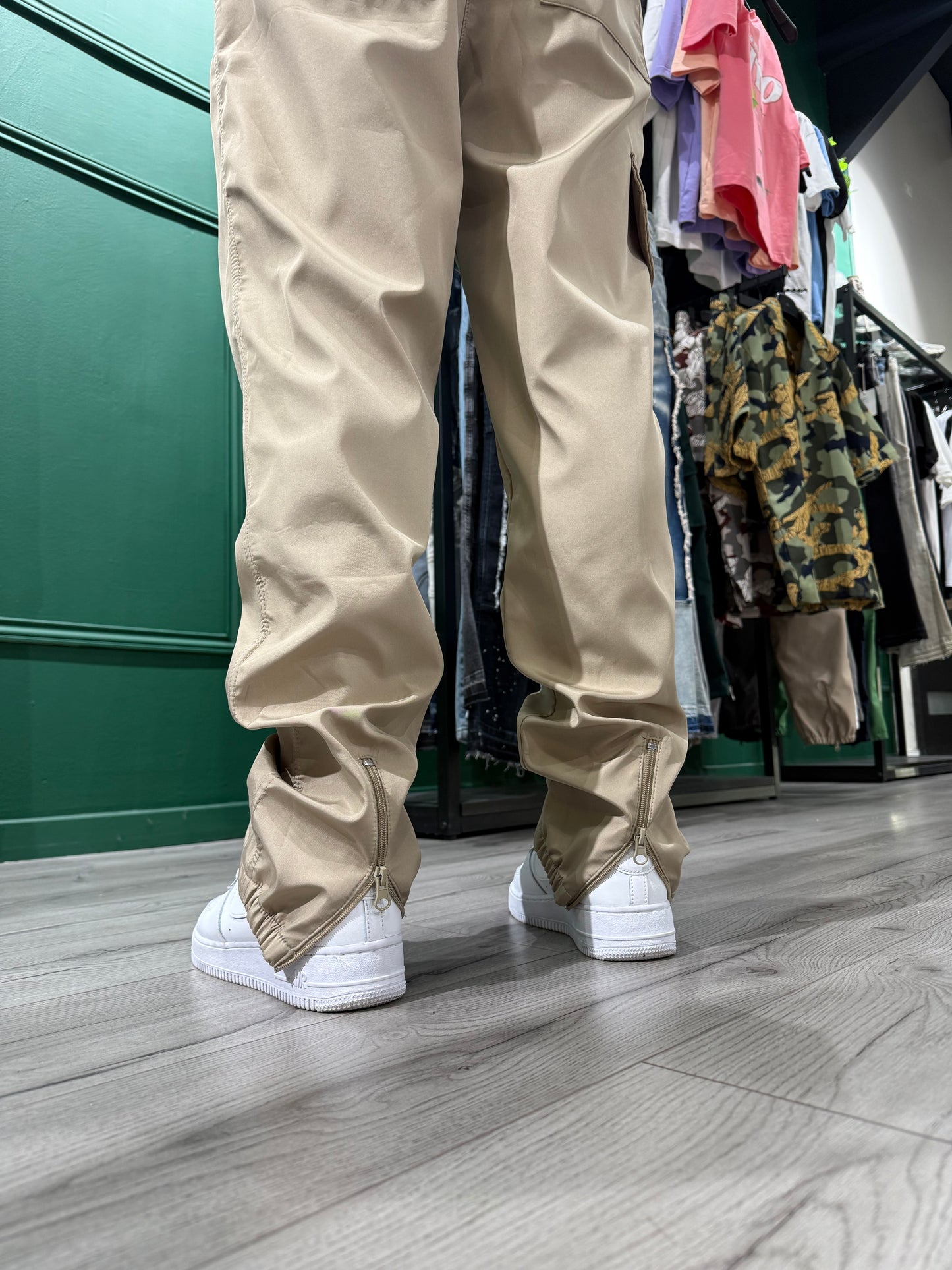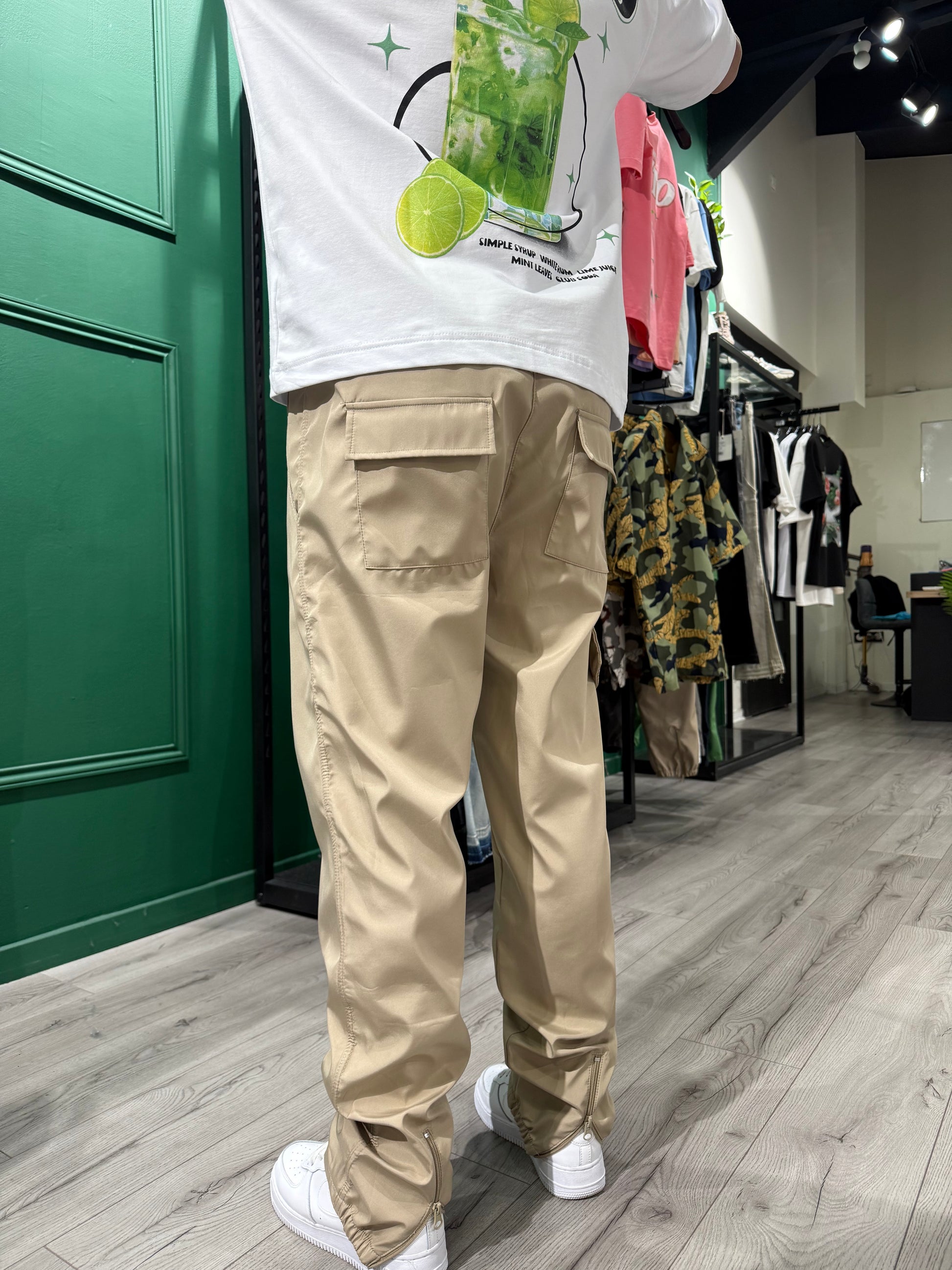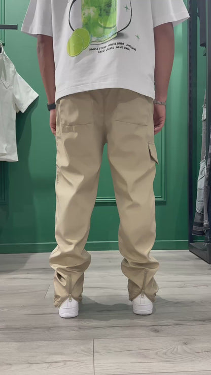 Pantalon cargo d’un style décontracté, pratique et esthétique permet de mettre en valeur vos jolies paires de sneakers avec sa fermeture éclair arrière sur le bas du pantalon.